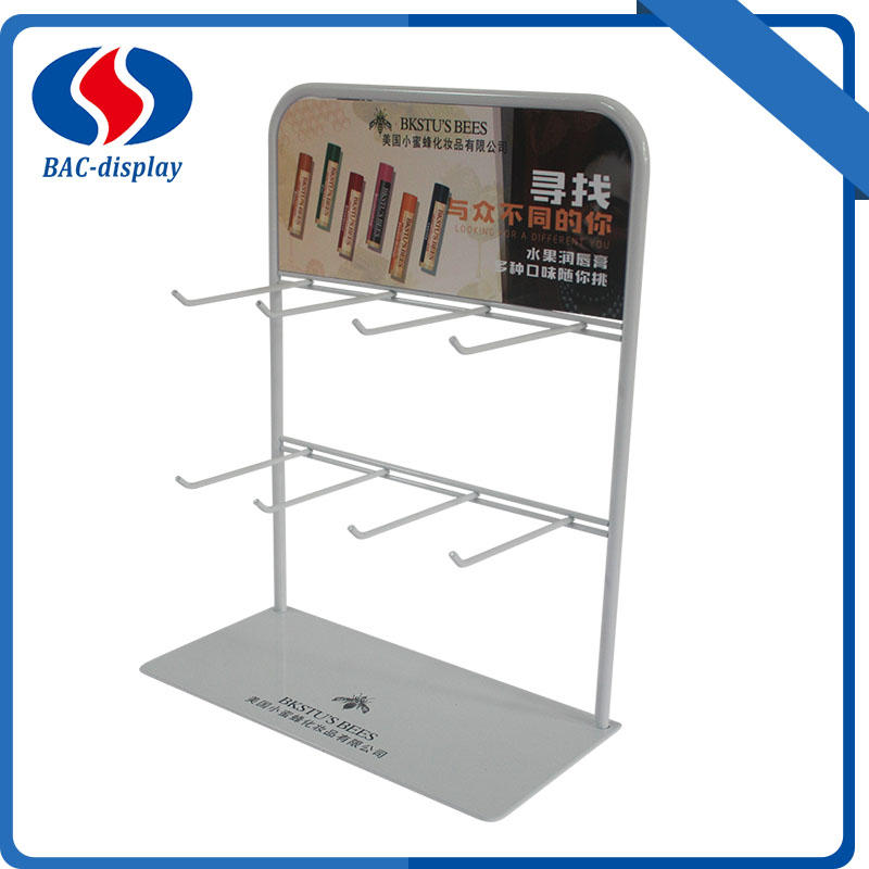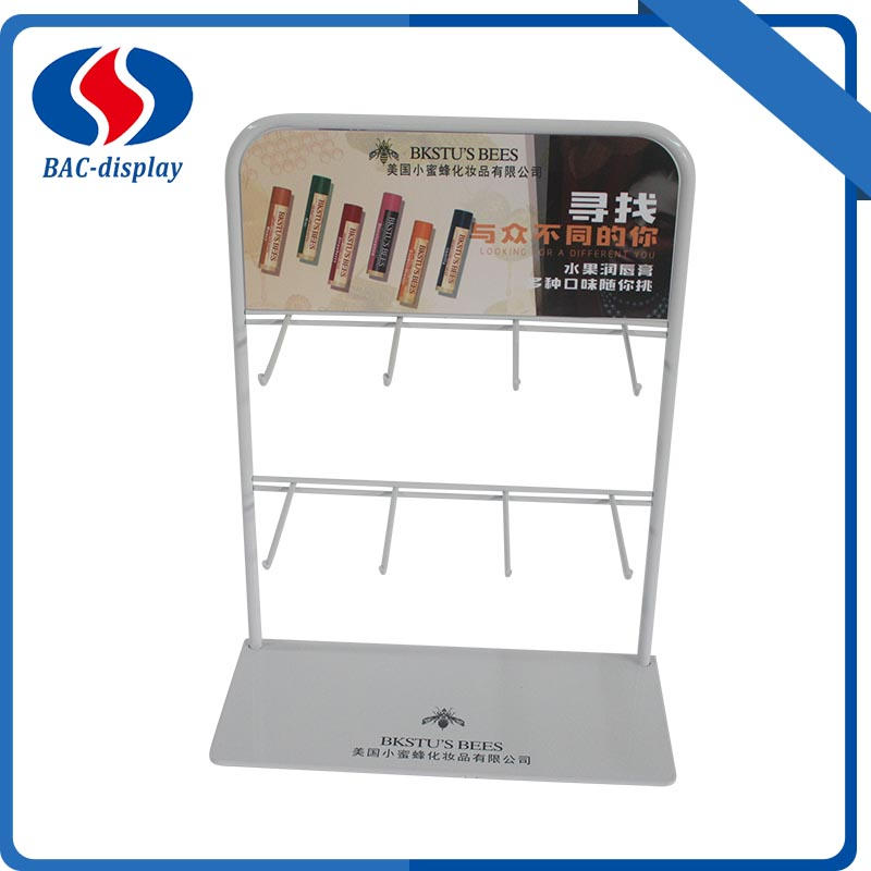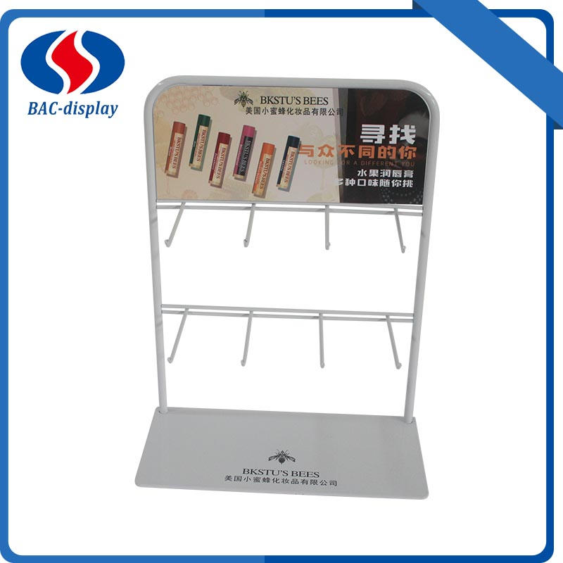 Ten ekspozytor na szminki BAC to mała półka, która jest używana na stole w sklepach kosmetycznych i kasjerach przy supermarketach do wieszania szminek i tak dalej. Ten ekspozytor na ladę jest popularnym stojakiem do wyświetlania reklam w tym stylu. Nie jest to zbyt duży koszt. a nie dla produktów o dużej objętości. ilość haczyków, długość i odległość można dostosować do rozmiarów produktów. Ta dolna blacha o grubości 3 mm byłaby bardzo stabilna dla ekspozycji Twoich produktów. Dzięki marce logo klienci z łatwością zapamiętają Twoją markę, pomogą Ci wygrać sprzedaż. Więcej informacji podano poniżej. Jeśli masz więcej pytań dotyczących wyświetlacza, skontaktuj się z nami.